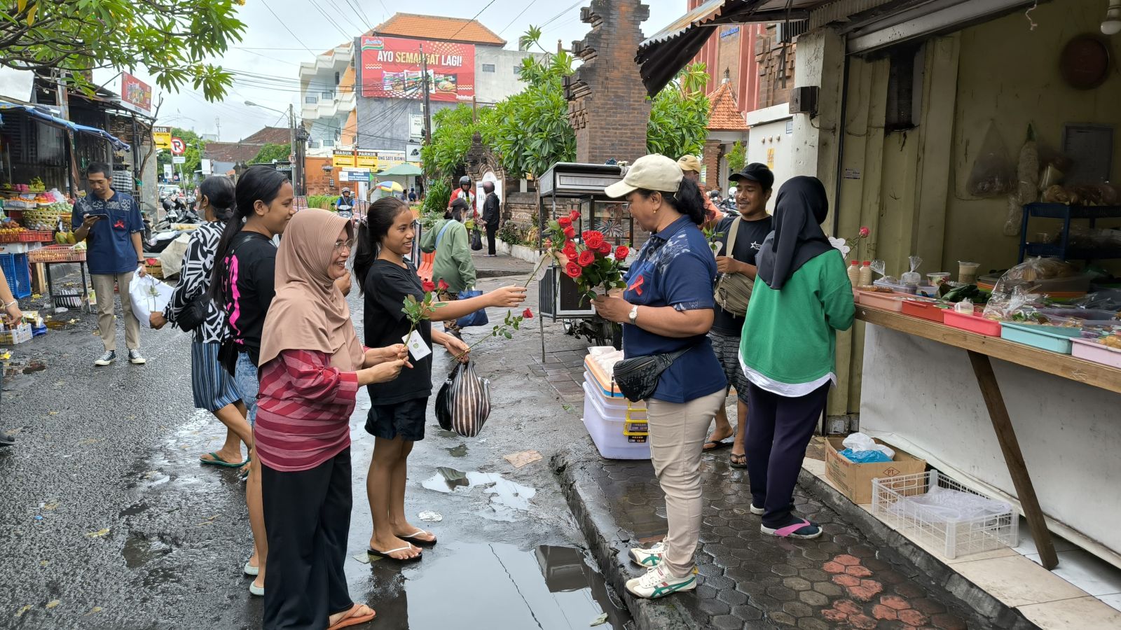 Dauh Puri Klod, 1 Desember 2024 – Dalam rangka memperingati Hari AIDS Sedunia yang jatuh pada tanggal 1 Desember 2024, Kader Desa Peduli AIDS dan Narkoba (KDPAN) Desa Dauh Puri Klod menggelar kegiatan bagi-bagi bunga di Pasar Sanglah dan Pasar Pulo Kerthi. Kegiatan ini bertujuan untuk meningkatkan kesadaran masyarakat mengenai HIV/AIDS serta pentingnya pencegahan dan penanggulangan penyakit tersebut.